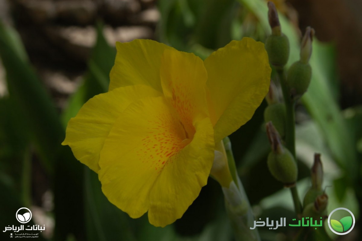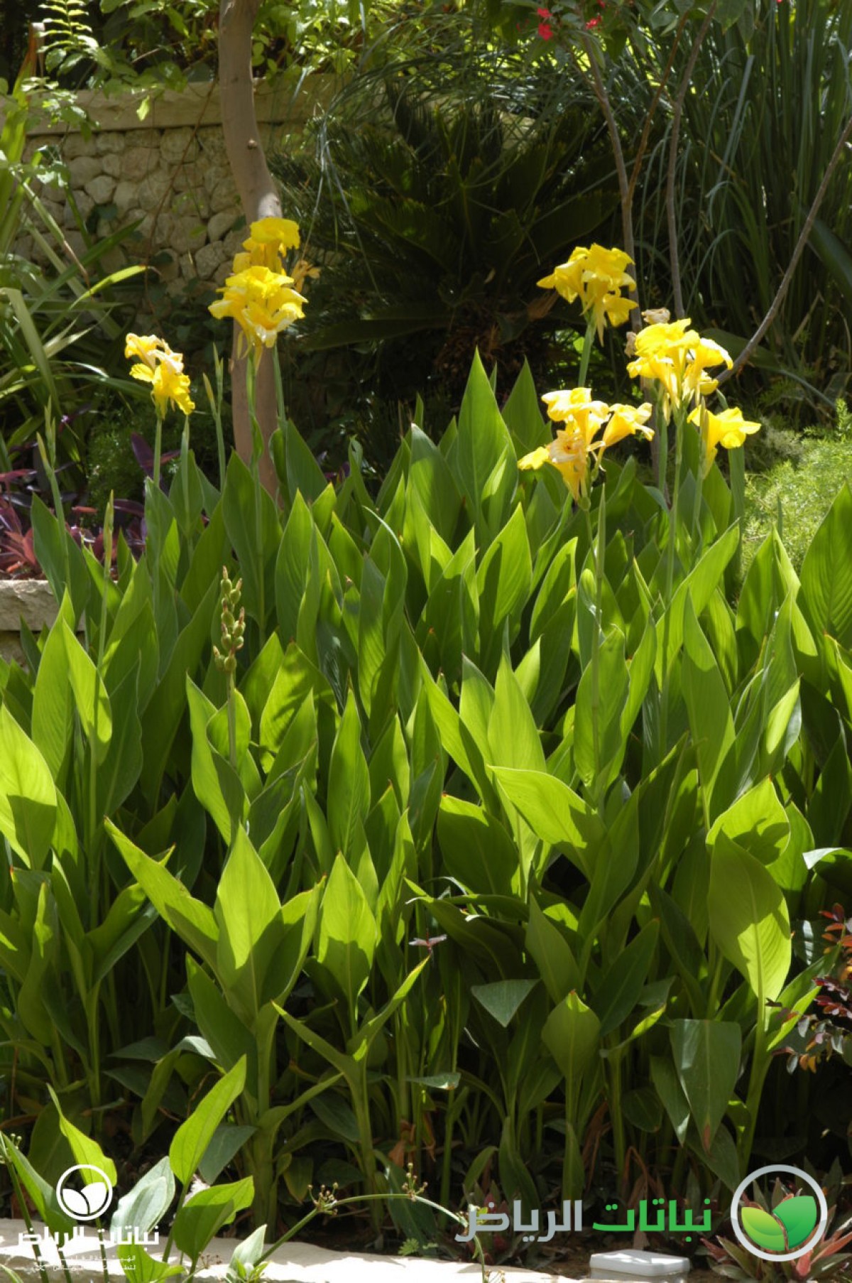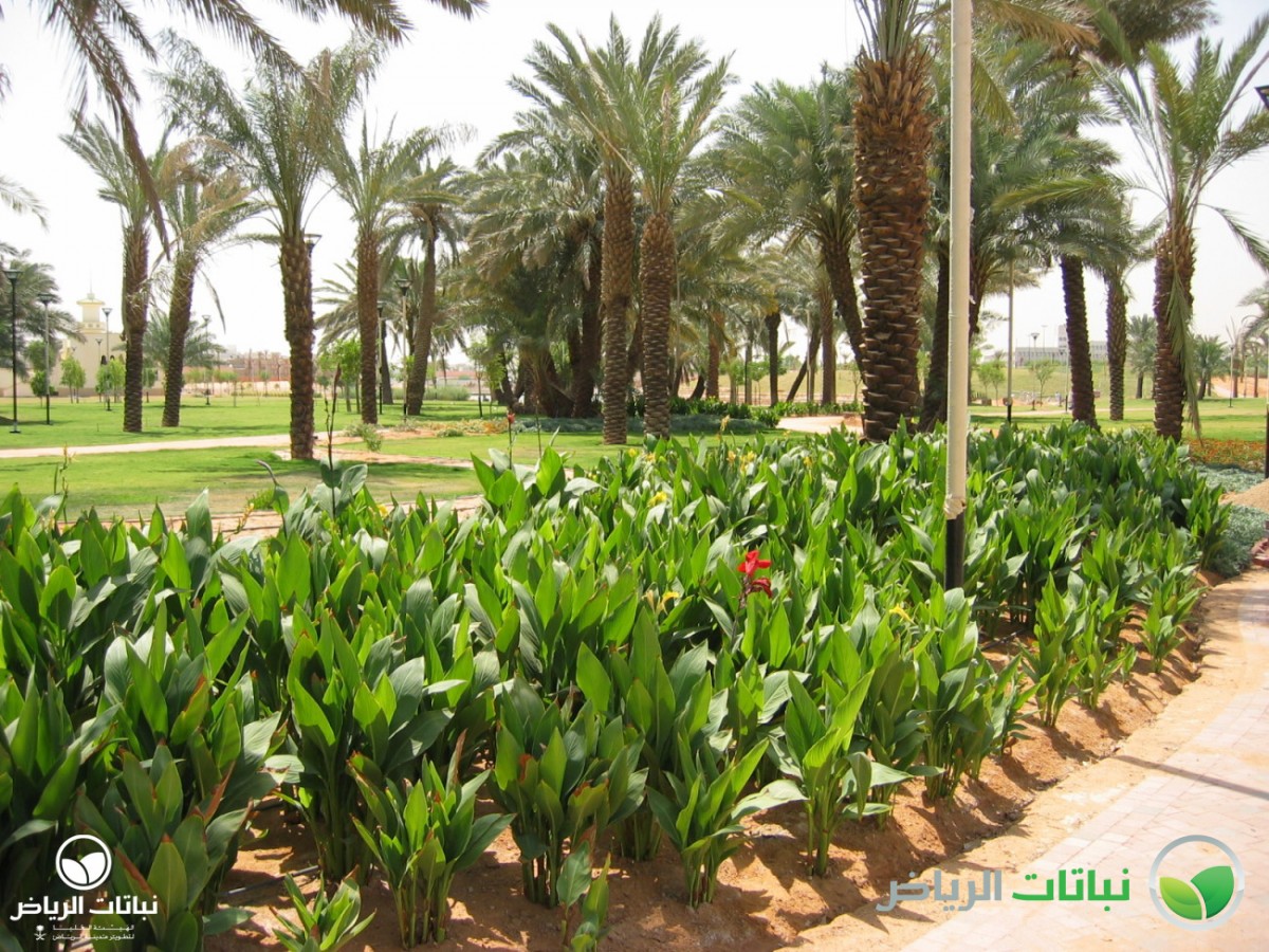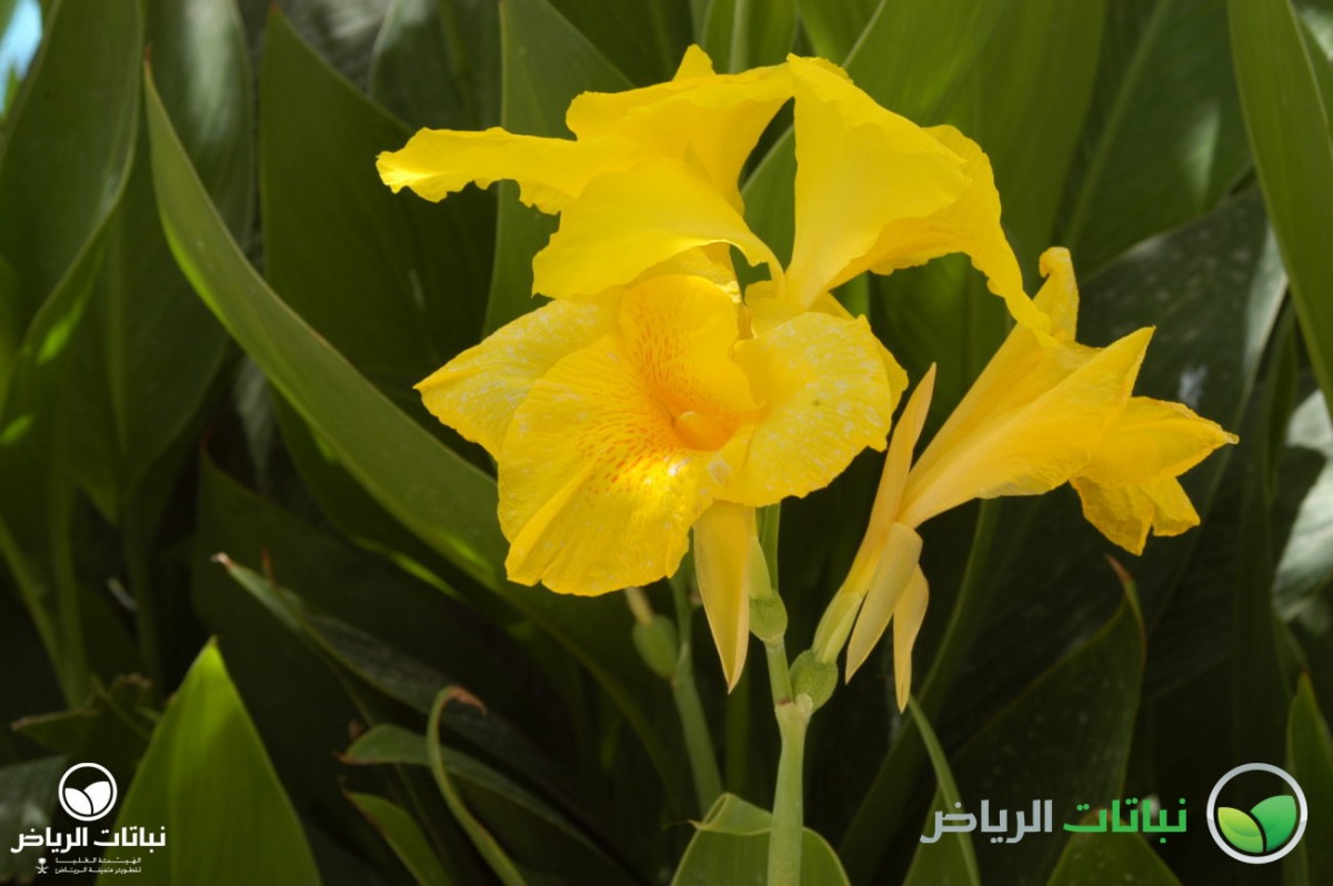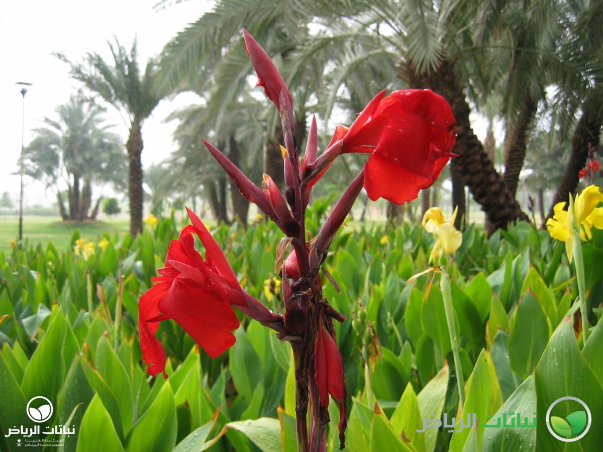 Cannas are beautiful, herbaceous perennials, which provide a colourful display from red to orange and yellow, when their basic needs are met: rich soil with lots of humus and plenty of water. They originate in the humid tropics, where the more than 30 different types of Canna are native to Central and South America. New cultivars have been created, particularly those with almost black foliage, or very deep-coloured red flowers and variegated leaves. An outstanding feature is that they bloom almost non-stop throughout the year. The attractive leaves are large, broad, oval, veined and rubbery-textured on glabrous stems; the roots are tuberous rhizomes. Exposure to the sun is essential, although partial shade encourages stronger growth, and a lack of light may reduce flowering. Cannas may be propagated by seed, and the fleshy rhizomes of cultivars with their bright colours require division. All parts of the plant are frost-tender. Alkaline soils with a high pH may cause chlorisis. C. indica can be used as a potted plant, or planted in herbaceous borders, on the edge of ponds, and as a patio plant. They should be set about 50 cm apart and mulching the soil helps to keep in moisture. Clumps of Cannas look more natural than massed planting. High winds tear the leaves, and so a protected location is recommended, especially in Arriyadh, where leaf scorch could potentially be a problem. Dead flowers should be cut off to stimulate new flowers. Any ungainly leaves should be removed to the ground to encourage new shoots with lush foliage.