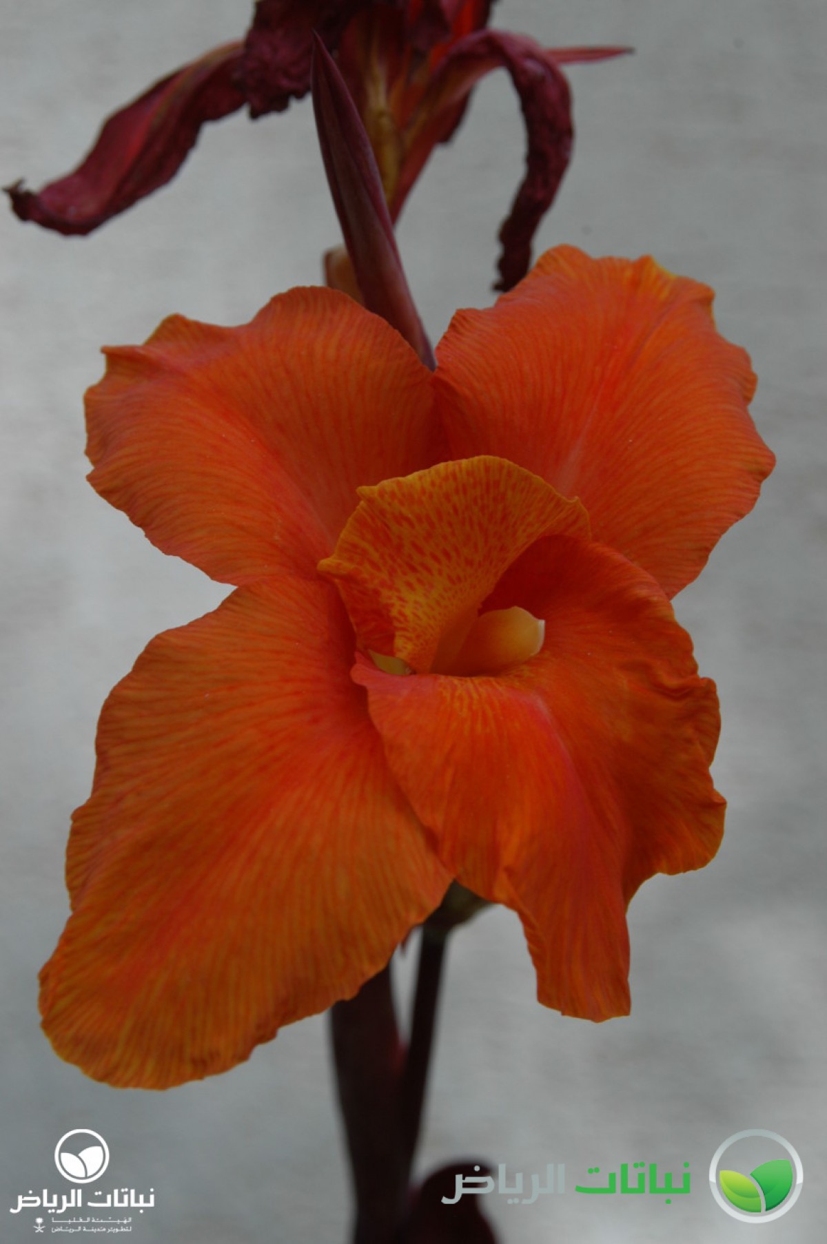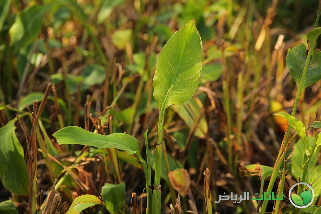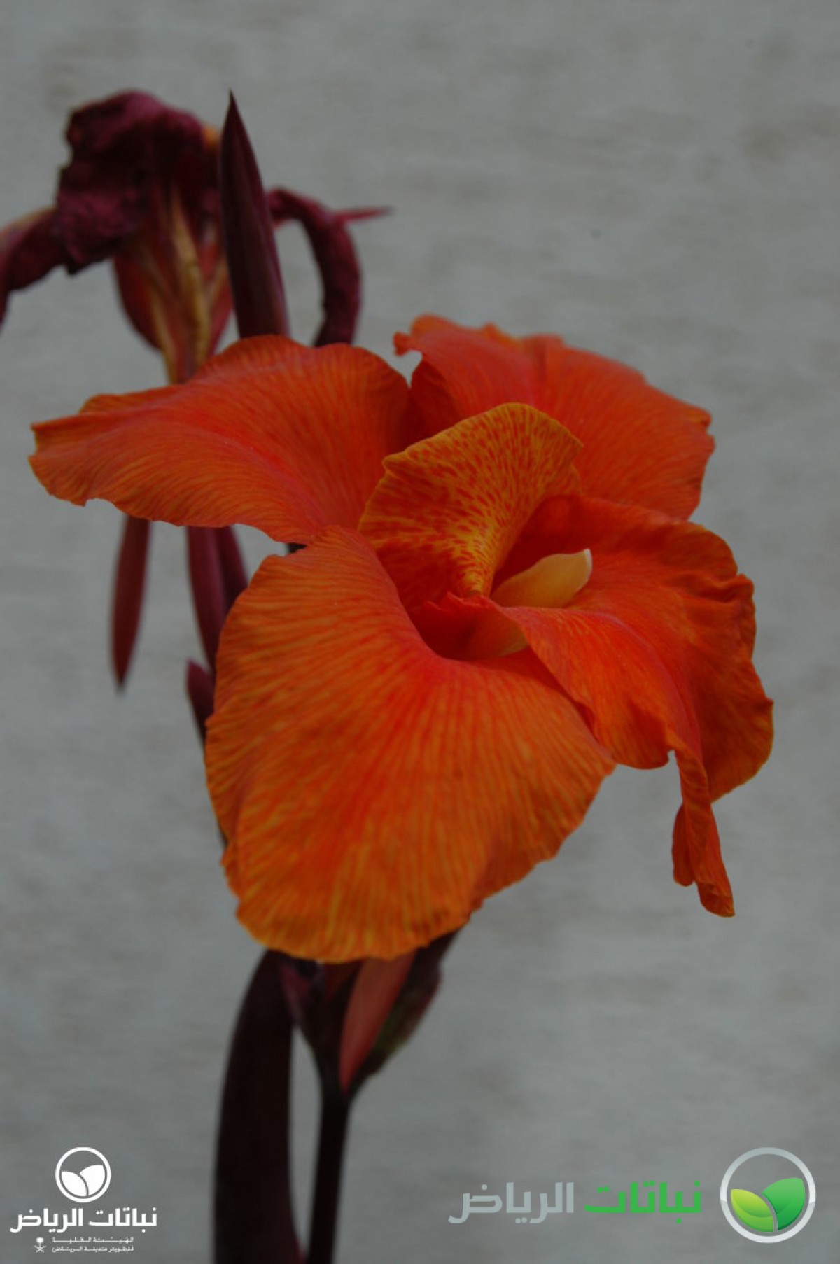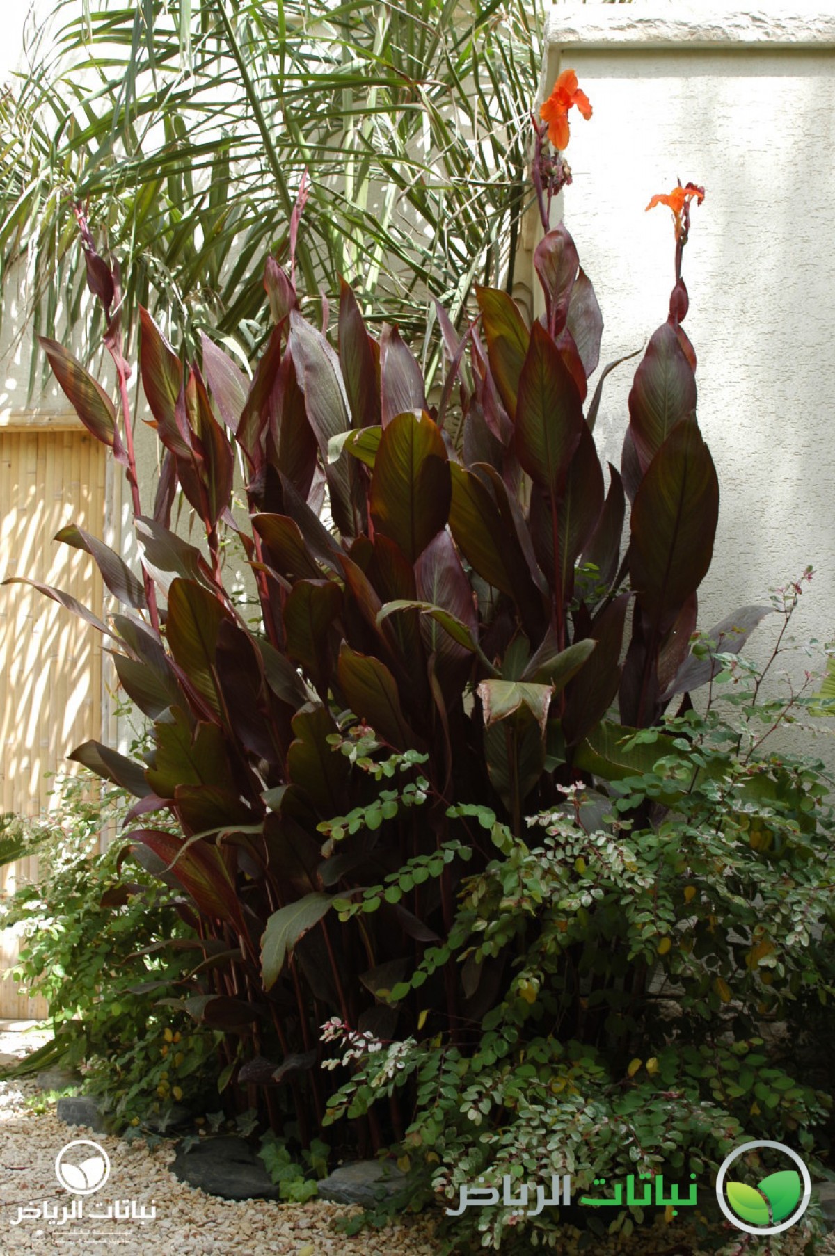 Cannas are beautiful, herbaceous perennials, which provide a colourful display from red to orange and yellow, when their basic needs are met: rich soil with lots of humus and plenty of water. They originate in the humid tropics, where the more than 30 different types of Canna are native to Central and South America. New cultivars have been created, particularly those with almost black foliage, or very deep-coloured red flowers and variegated leaves. An outstanding feature is that they bloom almost non-stop throughout the year. The attractive leaves are large, broad, oval, veined and rubbery-textured on glabrous stems; the roots are tuberous rhizomes. Exposure to the sun is essential, although partial shade encourages stronger growth, and a lack of light may reduce flowering. Cannas may be propagated by seed, and the fleshy rhizomes of cultivars with their bright colours require division. All parts of the plant are frost-tender. Alkaline soils with a high pH may cause chlorisis. C. indica can be used as a potted plant, or planted in herbaceous borders, on the edge of ponds, and as a patio plant. They should be set about 50 cm apart and mulching the soil helps to keep in moisture. Clumps of Cannas look more natural than massed planting. High winds tear the leaves, and so a protected location is recommended, especially in Arriyadh, where leaf scorch could potentially be a problem. Dead flowers should be cut off to stimulate new flowers. Any ungainly leaves should be removed to the ground to encourage new shoots with lush foliage.