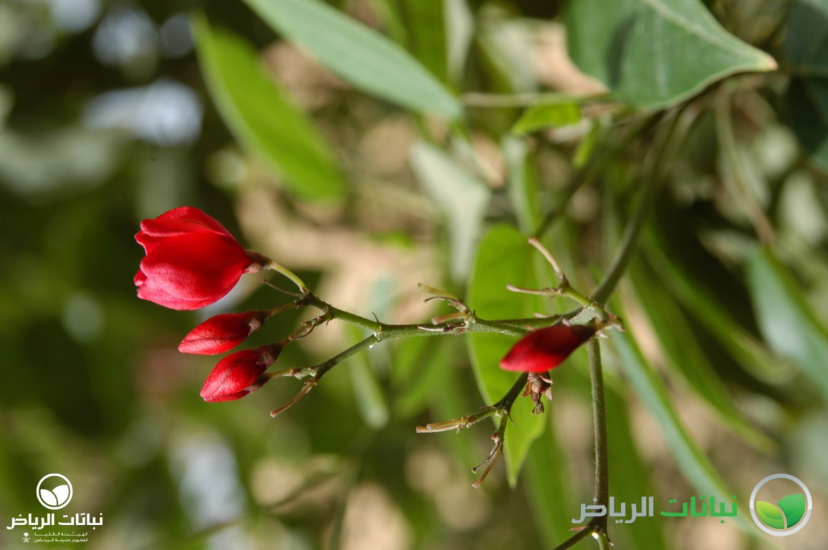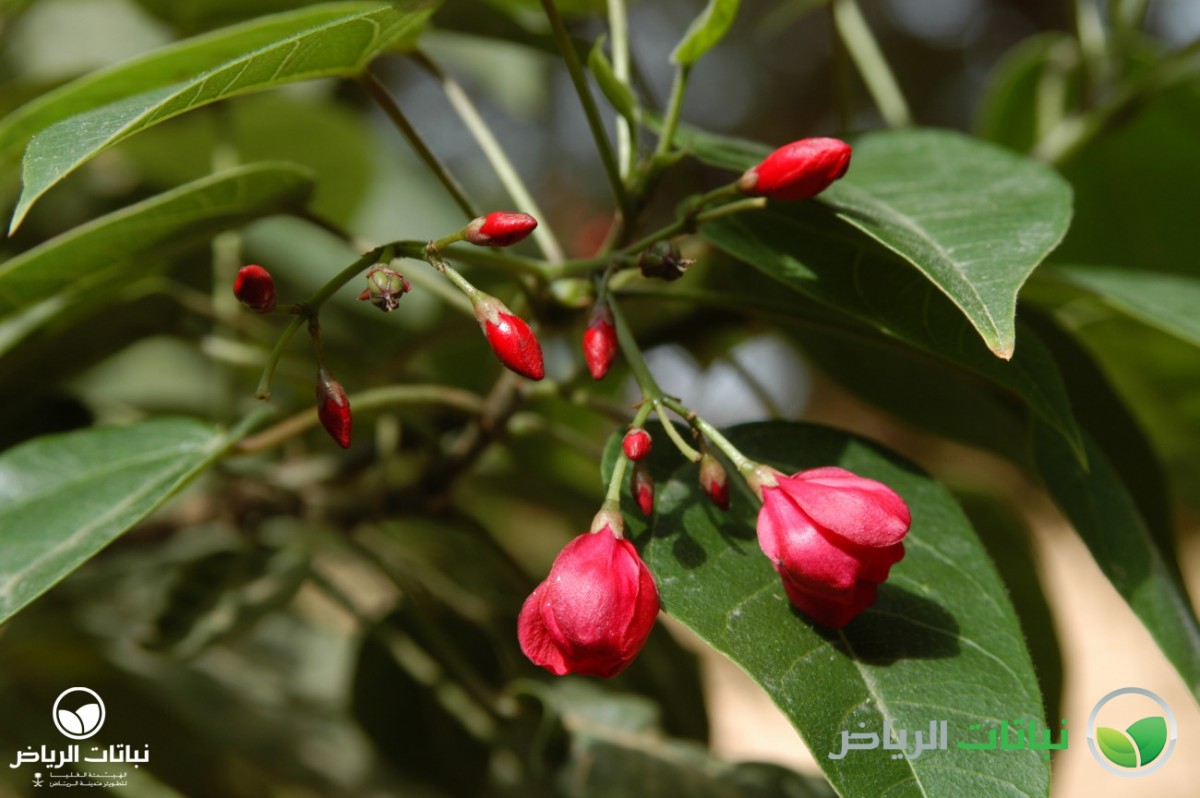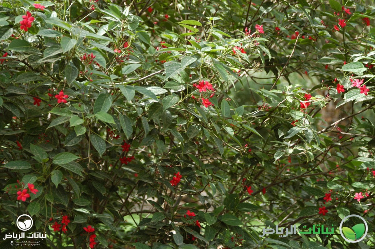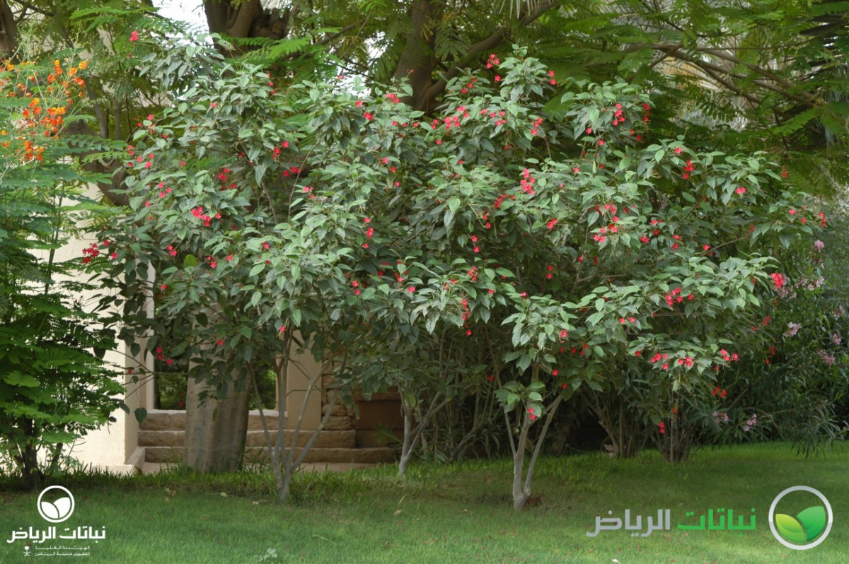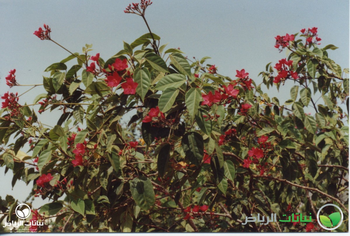 Native to Cuba, this tall, dense, rounded evergreen shrub, commonly known as Peregrina, grows up to 3 metres high with an equal spread, and when mature will be almost like a tree with several slender trunks. It has been quite successful in Arriyadh in recent years, in both parks and gardens, as well as in urban situations. The glossy, oval leaves are about 10 cm long, medium-green and velvety on the upper surface. Bright scarlet, five-petalled, star-shaped flowers with yellow stamens bloom in clusters in summer. J. integerrima does best in full sun in frost-free locations, but will tolerate partial shade. In very cold winters in Arriyadh, it may become semi-deciduous, but the main stems are hardy. It requires regular irrigation, especially in late spring and summer, but can be classed as a drought-tolerant plant, once established. Tolerant of a wide variety of poor and dry soils, as long as these are well draining, the shrub is not tolerant of salinity. It flowers on the current year’s growth, so it can be pruned at any time of the year. All parts of the plant contain toxic substances. Propagation is from cuttings taken in spring. A slow-release fertiliser, applied two to four times a year, will improve the plant’s appearance. J. integerrima is a spectacular shrub in flower and can be used as an accent or in a shrub border. It is also a fine container plant for patios. Suitable for planting in buffer strips such as road medians and in urban landscapes squares, some protection is necessary against hot desiccating winds.
